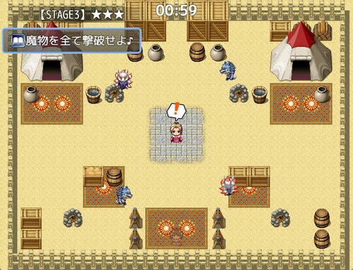 邪魔な敵から逃げつつ対象の敵にアタックするワンマップのミニゲームです。時間制限アリです。ターゲットは近づかないと認識できないようになっています。意外と高い技術を使っているゲームでした。