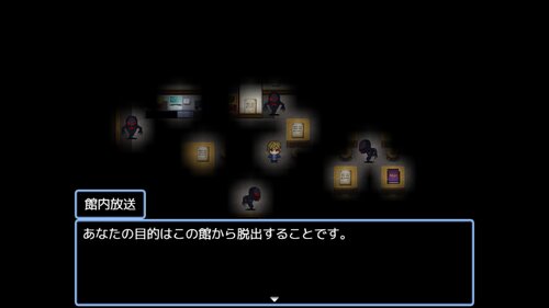 ワンマップの謎解きゲームです。メモが何個かあるので読んで謎を解きます。脅かし要素も多少あります。部屋から脱出したらクリアです。