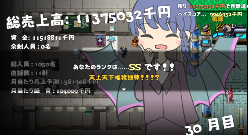 10億で目標達成でエンディングになりますが、さらにランクがあります。SSランクを目指してください。簡単にはいかなくてやりごたえあります。