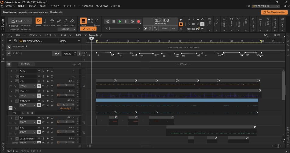 前回。音楽だけは自作するので使い慣れた『Studio One Prime』をインストールしようとしたら無料提供が終わっていてダウンロードできないところまで来ました。なので『Cakewalk Sonar Free Tier』を使います。