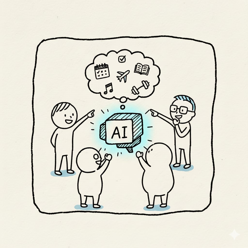 もうちょっと現実的な作戦がいいです。ということでまずはAIに『今年の予定をAIに立ててもらう』のイラスト描いてもらいました。これで予定が立ったも同然。AIが便利すぎて怖い。