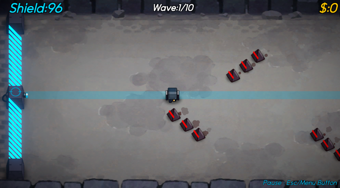 スコアでレベルアップします。普通のタワーディフェンスは砲台をパワーアップさせますが、砲台は固定なので、敵を押す能力をパワーアップさせます。意味わかりますか。やると分かります。